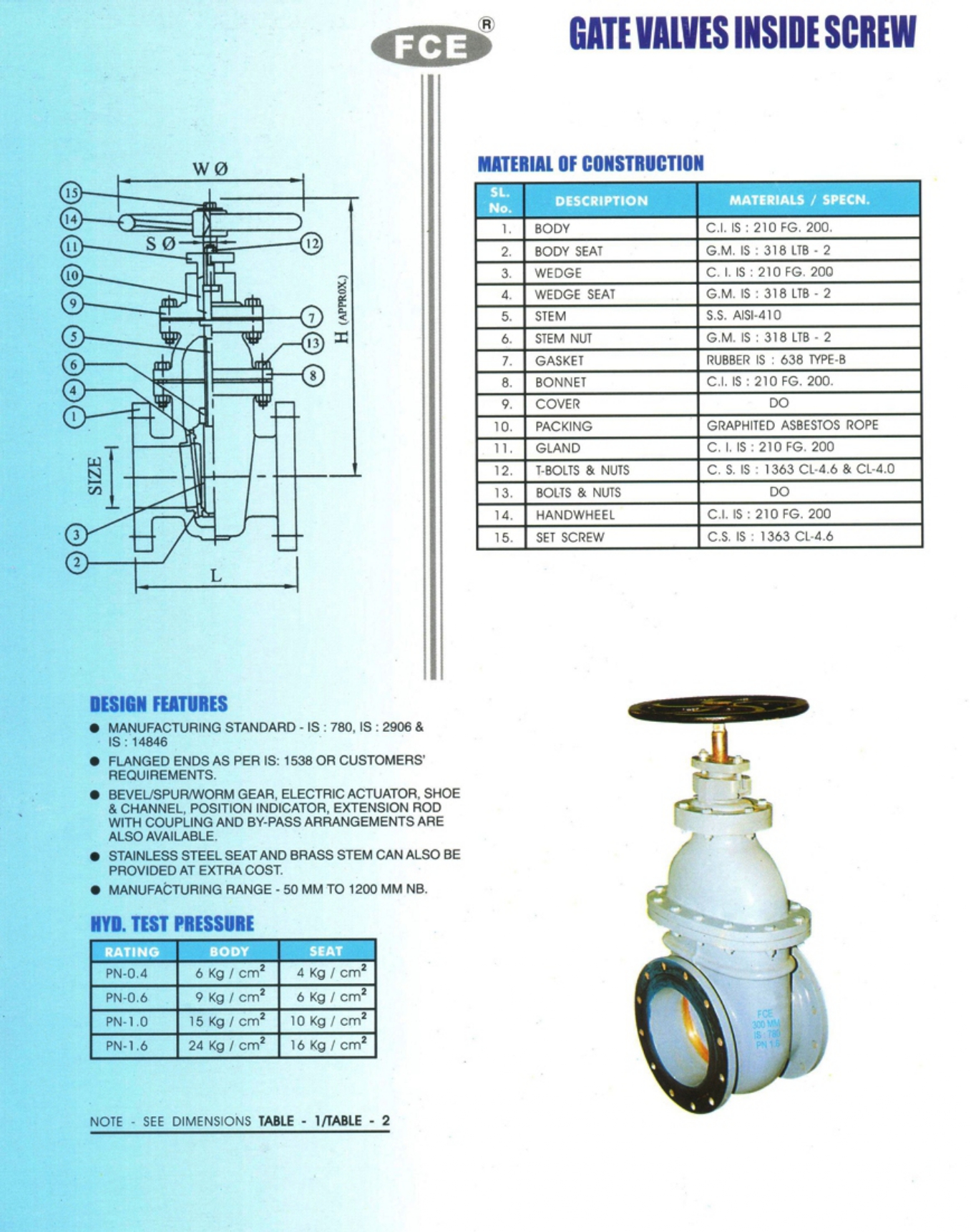 - Gate/Wedge Material: Cast Iron / Stainless Steel / Bronze